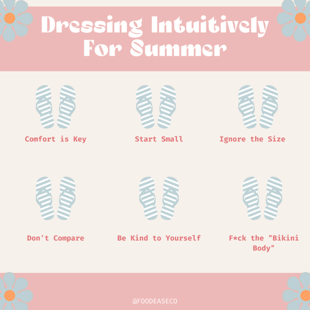 Anything red, white, blue, and comfortable. Today I challenge you to wear something that you have always wanted to wear but never felt like you could/should because of how you view your body. If we continue to try and challenge that annoying voice of diet culture in our heads making us feel like we are not worthy to wear certain things we may eventually not hear it. What clothes are comfortable on your body? What fabrics feel comfiest? What colors make you feel your best? Whatever your answer was to those questions is what you should be wearing. This July 4th and every day celebrate your unique body and all the amazing things it does for you every day.