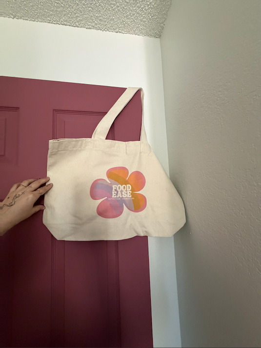 Large off-white tote bag with Food Ease Logo designed to carry it all: groceries, gym gear, work essentials, or your latest market haul. Made from durable, high-quality canvas, it’s sturdy enough for daily use while still keeping that clean, minimal aesthetic.